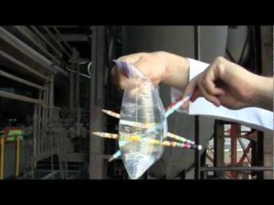 Llena la bolsa de agua y, a continuación, atraviesa la bolsa con los lápices. El resultado es que el agua no se saldrá ya que el polímero deja paso al lápiz y se adhiere a él impidiendo la fuga de agua. Antes de hacer el experimento comprueba que hay lápices que penetran y se adhieren mejor al plástico que otros.
