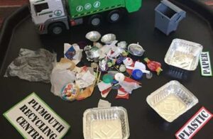 En una bandeja coloca distintos elementos: plástico, tapones, aluminio, papel… Ayuda a los niños a poner cada tipo de producto en un recipiente: los que tienen que tirar en el contenedor amarillo, los que van al verde y al azul. Con este sencillo juego los niños aprenderán a separar correctamente los materiales.