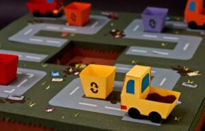 Esta idea ayuda a tener la posibilidad de reutilizar cualquier elemento de casa (cartones, cartulinas, revistas y periódicos viejos). La idea, es crear una calle por la que circularán unos camiones de reciclado que podemos hacer con unas pequeñas cajas o cartulinas.
