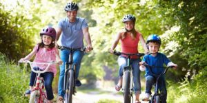 Bicicleta. Una de las ventajas de practicar este deporte, es que se puede realizar al aire libre en la ciudad o en contacto con la naturaleza, también facilita la conversación en familia. Es un deporte divertido donde se estimula la alegría, sobre todo en los más pequeños.