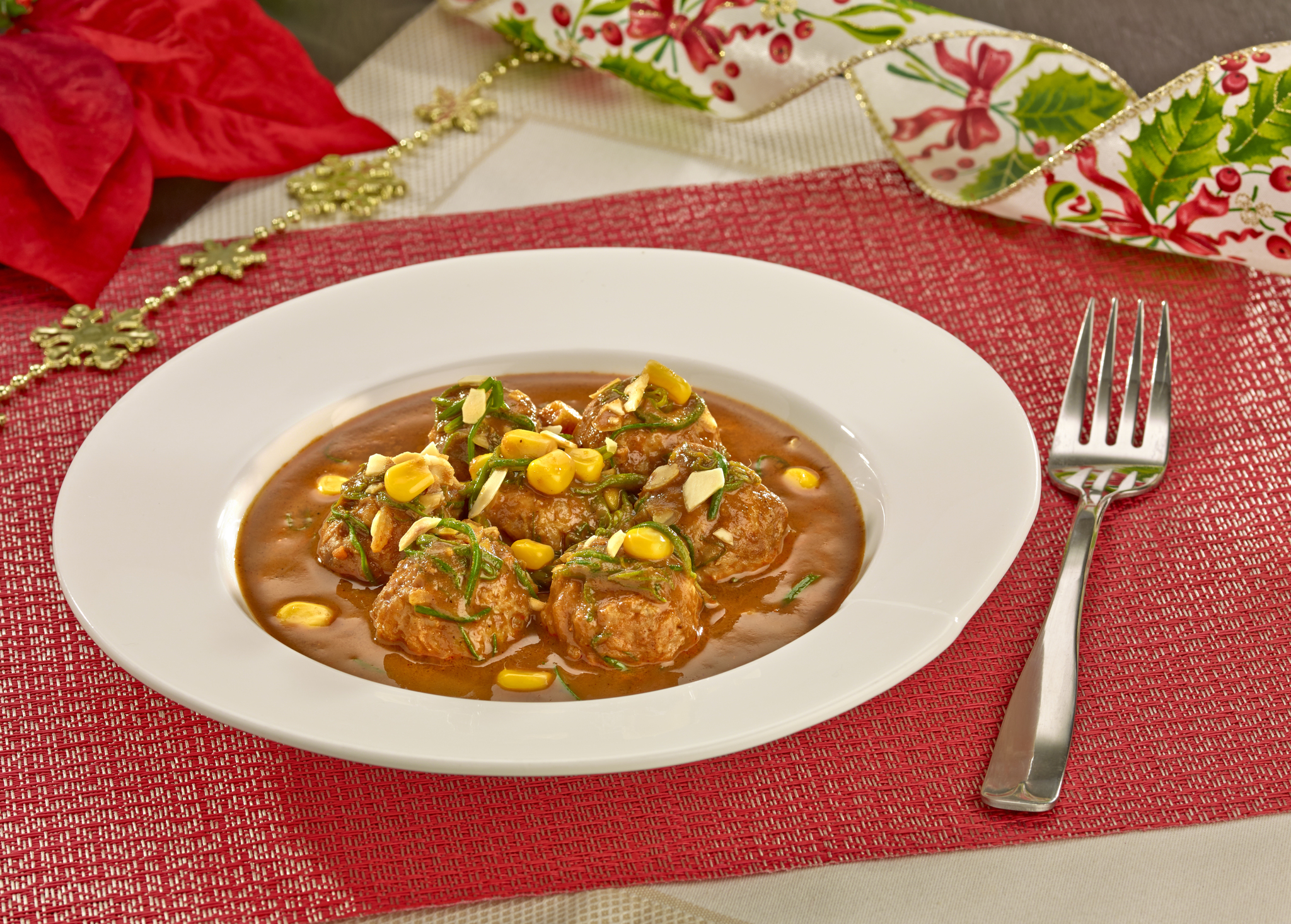 - Formar las albóndigas con la mezcla de carne y agregarlas al mole caliente. Cocinar por 20 minutos a fuego bajo y servir.