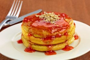 - Servir los hot cakes calientes con mermelada y semillas extra.