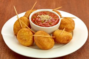 - Servir las banderillas con la salsa cátsup y el ajonjolí.