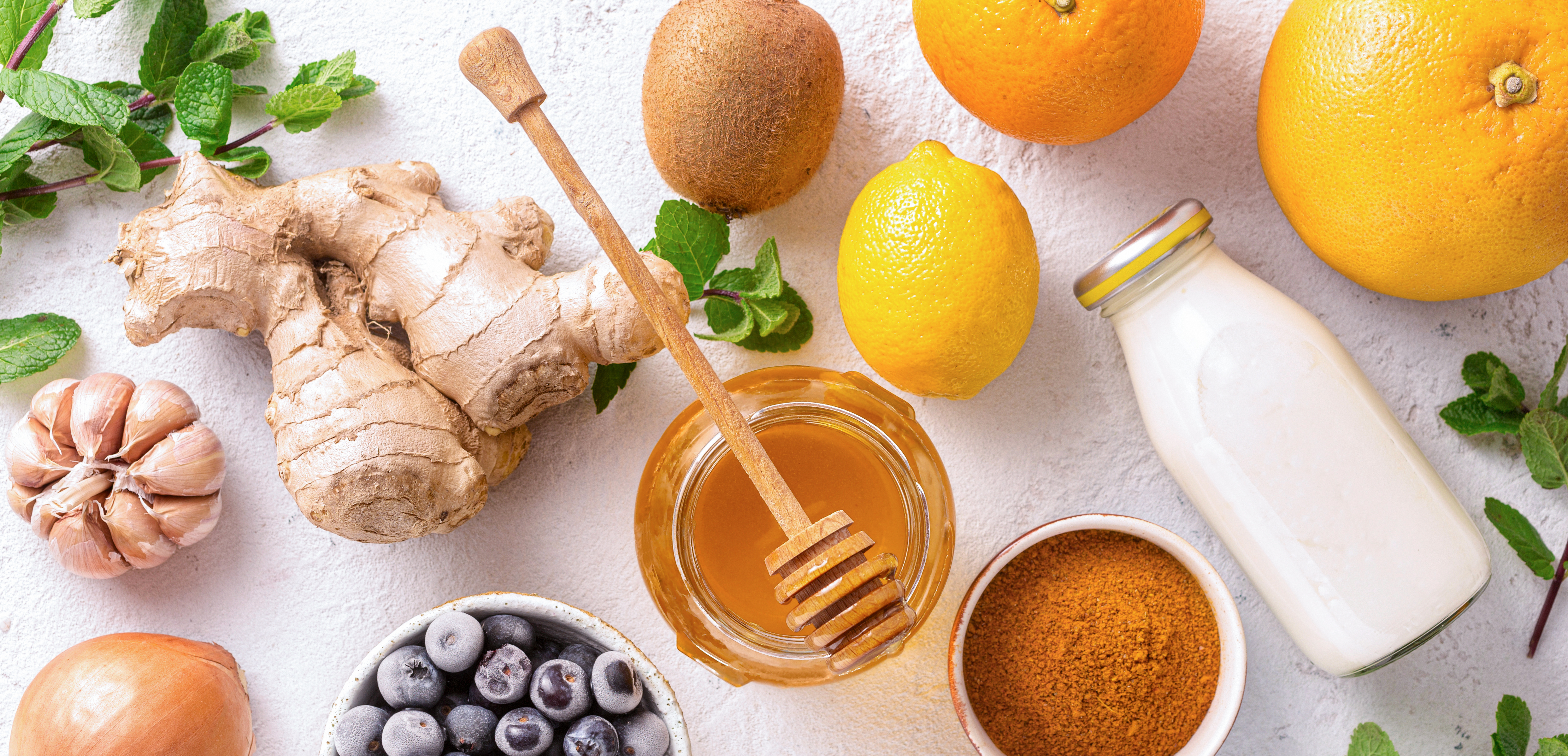 Different healthy products for Immunity boosting top view
