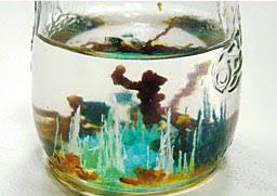 La reacción es sumamente sencilla. Consiste en dejar caer diferentes sales coloreadas de varios metales de transición sobre una disolución comercial de silicato sódico (vidrio líquido, material que puede ser encontrado en algunas farmacias) todo dentro de un recipiente de vidrio.