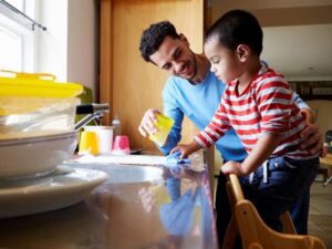 Este punto está totalmente ligado al anterior. Debemos incluir a los chicos y chicas a involucrarse en las tareas domésticas, sin importar cuales sean. Por ejemplo, los niños pueden ayudar a cocinar mientras las niñas ayudan a podar el pasto o arreglar algún desperfecto del hogar. De esta manera les demostramos que sin importar su género pueden realizar cualquier actividad.