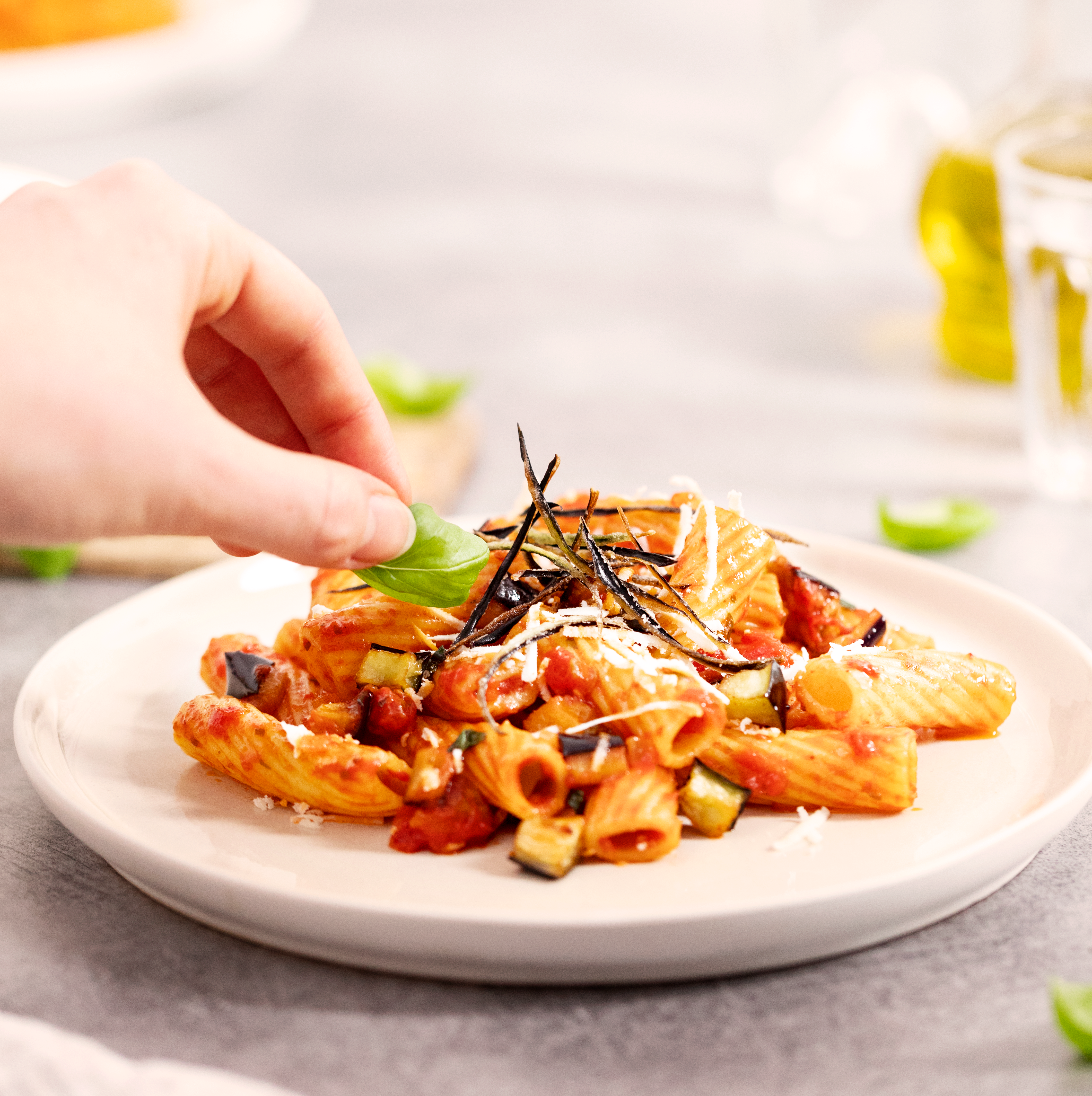 Tortiglioni alla Norma con Salsa Barilla® Arrabbiata