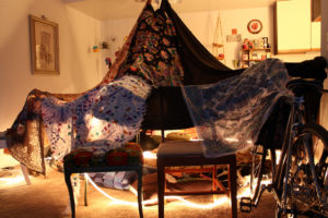 2. Construyan un fuerte con mantas (sillas, sofás y estambre para sostener las mantas).