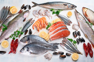 - Pescados y mariscos: Hoy podemos encontrar una gran variedad a buen precio, prefiere los que son de temporada e inclúyelos al menos dos veces a la semana. Además de aportar proteína, los pescados son bajos en grasa y, si consumes trucha o salmón, obtienes los beneficios de los ácidos grasos omega 3. Por ejemplo, una porción de 150 gramos de salmón aporta 24,5 gramos de proteínas. Los pescados y mariscos además son buena fuente de yodo, vitamina D, vitamina B2, los que tienen hueso como las sardinas son excelente fuente de calcio.