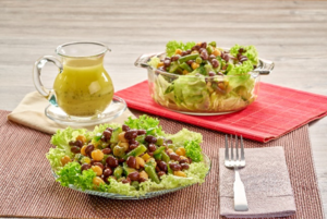 - Incorpora la vinagreta, mezcla y sirve sobre una cama de lechuga.