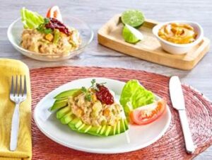 Abanico de aguacata con ensalada de atún al chipotle