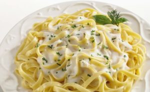 Fetuccini con champiñones en salda de queso crema y nufchátel
