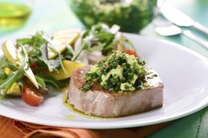 - Sirve el atún con el chimichurri de aguacate.