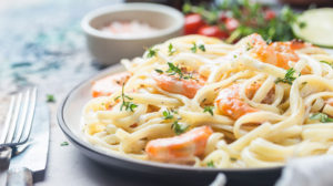 Pasta Alfredo con camarones