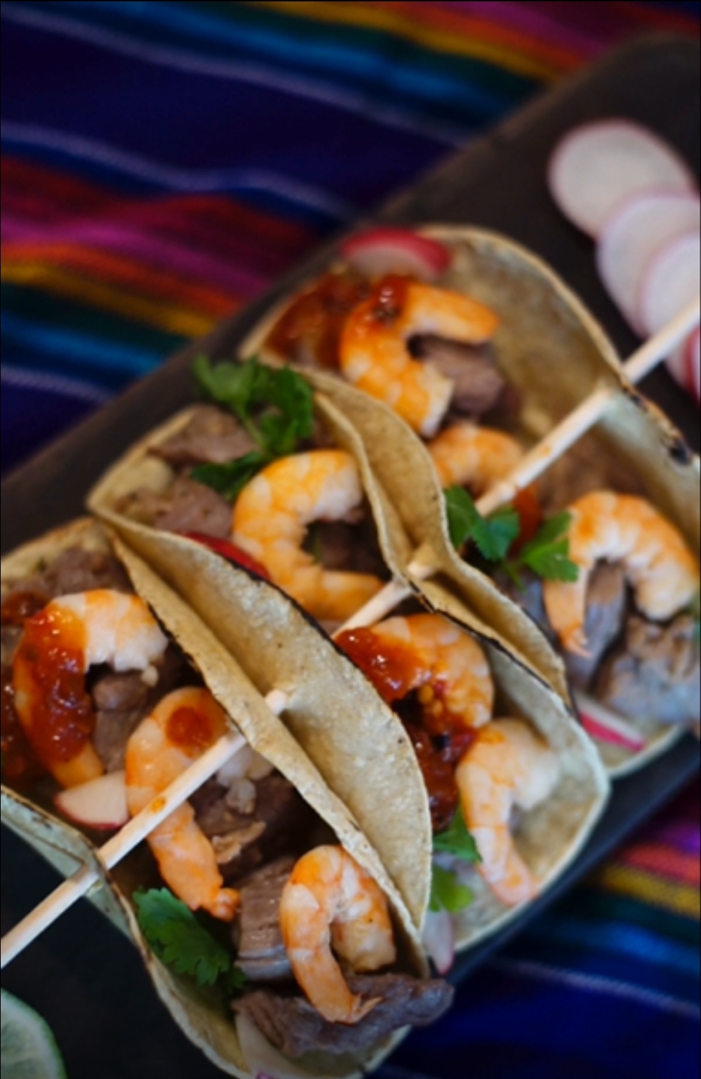 ¡Disfruta de estos deliciosos tacos de mar y tierra!