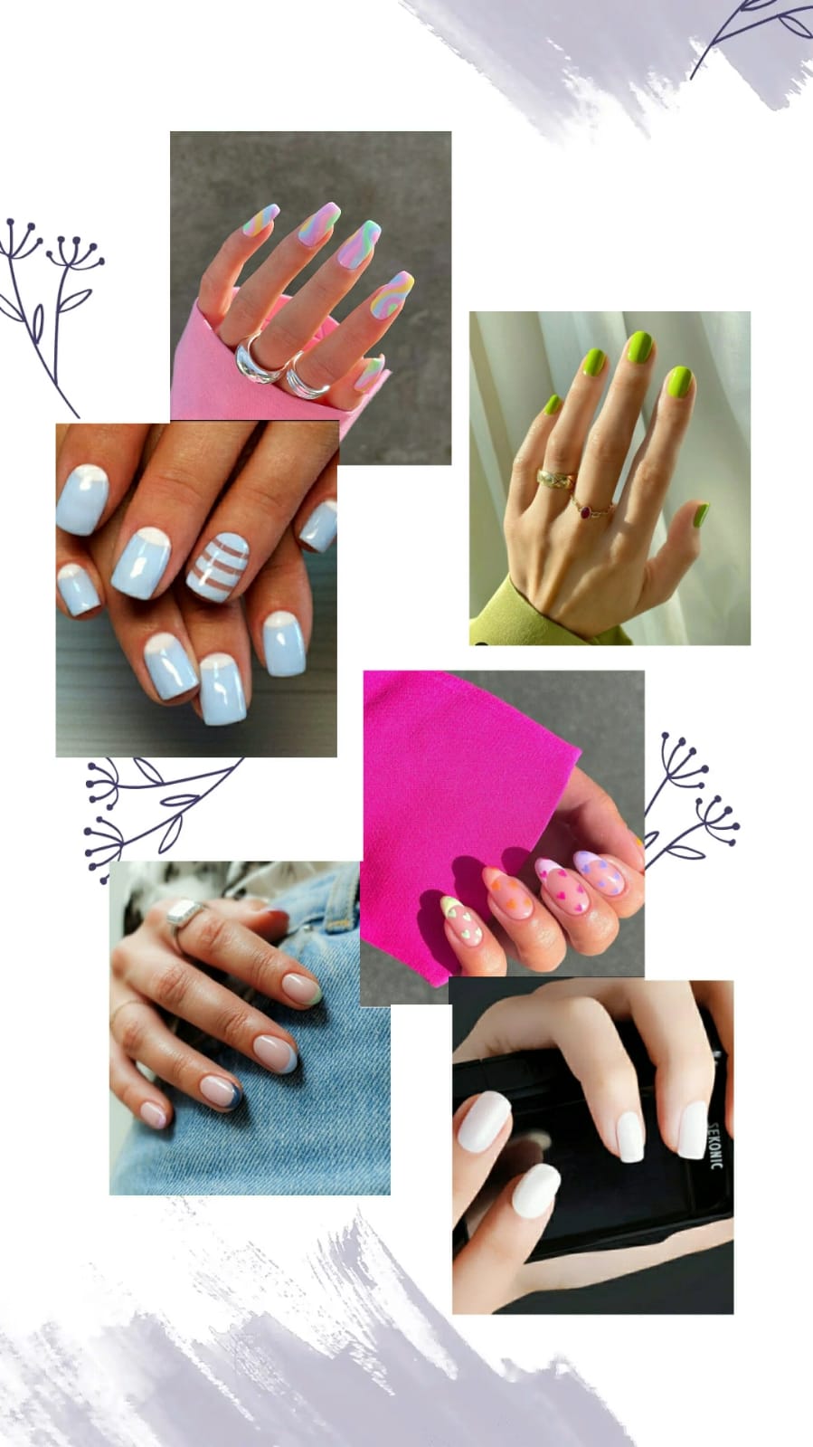 Destacaría los tonos muy llamativos como el fucsia. Puedes pintarte cada uña de una forma diferente (¡las ‘mismatched nails’ siguen siendo una de las tendencias más potentes!), hacerte una manicura con un color distinto en cada uña o también apostar por un acabado más clásico y minimalista. Tú decides.