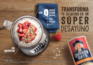 Les quiero contar, que Quaker® está lanzando su campaña “Transforma tus desayunos en Súper desayunos” y lo que ellos están buscando con ésto, es agregar el Súper Grano de avena a cualquier tipo de desayuno, para darle más nutrición, esto se debe, a que el Súper Grano aporta fibra, proteína y BETA-Q y es muy fácil de incorporar a cualquier desayuno.